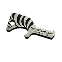Tiger's Tooth Key Ring Bottle Opener is the reliable, easy-to-use opener that completely blends in with your keys. While similar products are longer or more fob-like, Tiger's Tooth is no bigger than a standard house key! Tiger's Tooth is great for tailgating, parties, camping and anywhere a handy bottle opener could help save someone from chipping a tooth, scratching a table top or breaking a fingernail. The extended "tooth" on the key's stem makes for a very handy tool to start can tabs and open parcel boxes and shrink-wrapped packaging.The eye-catching tiger stripes are laser marked (on both sides), producing a long-lasting design that is far more resistant to scratching, scuffing and other forms of wear than traditional screen-printing and lacquer applications. Tiger's Tooth is made from durable, 100% American stainless steel and manufactured in the USA!Patent Pending
