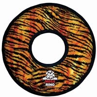 Mega Ring – By far the 'TUFF"est toy around.The Mega Tuffy is our strongest, most durable toy'Tiger tested and dog approved!Excellent for a game of fetch or multi-dog tug-o-war, this toy keeps even the biggest dogs happy.The Mega Ring is for interactive play with one or multiple dogs.Easy to toss and Floats! Great for fly ball training. The soft edges won't hurt gums.Mega Construction: Seven Rows of Stitching Each toy's seven layers of material are sewn together with two rows of linear stitching and two rows of cross stitching. The four rows of stitching are protected with an industrial grade luggage material that is sewn 3 more times. Seven Layers of Material Three layers of 600 Denier industrial grade material, three layers of plastic coating and finally one layer of soft fleece. All seven layers are rolled together and then sewn with a one inch cross pattern to prevent layer separation. Protective Webbing Additional industrial grade luggage material is sewn around the outside edge with three rows of stitching to cover and protect the first four rows of stitching. Squeaker Safety Pockets Each Squeaker is safe and quiet because they are sewn into a nylon safety pocket beneath seven layers of material. These toys are machine washable (air dry) and float.