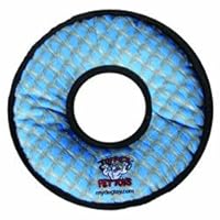 Mega RingBy far the TUFFest toy around. The Mega Tuffy is our strongest, most durable toyTiger tested and dog approved! Excellent for a game of fetch or multi-dog tug-o-war, this toy keeps even the biggest dogs happy. The Mega Ring is for interactive play with one or multiple dogs. Easy to toss and Floats! Great for fly ball training. The soft edges won't hurt gums. Mega Construction: Seven Rows of Stitching Each toys seven layers of material are sewn together with two rows of linear stitching and two rows of cross stitching. The four rows of stitching are protected with an industrial grade luggage material that is sewn 3 more times. Seven Layers of Material Three layers of 600 Denier industrial grade material, three layers of plastic coating and finally one layer of soft fleece. All seven layers are rolled together and then sewn with a one inch cross pattern to prevent layer separation. Protective Webbing Additional industrial grade luggage material is sewn around the outside edge with three rows of stitching to cover and protect the first four rows of stitching. Squeaker Safety Pockets Each Squeaker is safe and quiet because they are sewn into a nylon safety pocket beneath seven layers of material. These toys are machine washable (air dry) and float.