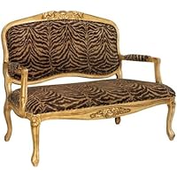 The Safari Settee puts an exotic spin on a classic old-world design. With cabriole legs, intricately carved detailing and a gracefully curving design, you'll love the look this traditional style settee provides. With its bold, animal-print upholstery, it will enhance your living room furniture arrangement with a dash of flair and spice that you will appreciate for years to come. Place your order today and make a bold move in your interior design. Constructed of top-quality materials for years of lasting comfort, beauty and use. Lovely antiqued finish complements the bold upholstery pattern to complete the look. Actual size is 48.5"W