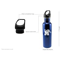 The stainless steelwater bottle features a secure screw top for spill-proof travel. Hook a chain or karabiner through the cap for an easy addition to bike, book bag, or belt. It's great on campus or at the big game. 26 oz. , 11" tall Stainless steel construction