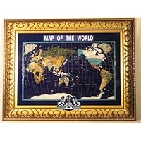 THIS BEAUTIFUL "BLUE OCEAN" GEMSTONE MAP IS 20.5" X 16" WITH 16" CROSS DIAGONAL IN SIZE (19" DIAGONAL WITHOUT FRAME), AND IT IS GARANTEED BEST QUALITY YOU CAN FIND ON WORLD MARKET. THIS GEMSTONE MAP IS GENERALLY SOLD ONLY AT HIGH-END RETAIL AND SPECIALTY STORES WITH OVER $1500 AS THEY ARE OF SUCH HIGH QUALITY AND SO EXPENSIVE. THIS GEMSTONE WORLD MAP IS HANDCRAFTED WITH OVER 30 DIFFERENT SEMI-PRECIOUS GEMSTONES. EACH COUNTRY IS INLAID FROM A DIFFERENT STONE, AND THE STONES ARE INDIVIDUALLY CUT AND GROUND TO EXACTING INTERLOCKING SHAPES. THE ELEMENTS OF THE MAP ARE CREATED OUT OF LAPIS LAZULE, MOTHER OF PEARL, AMETHYST, AFRICAN JADE, TIGER'S EYE, JASPER, TURQUOISE, PURPLE QUARTZ, ONYX, UNAKITE, ABALONE AND MANY OTHER BEAUTIFULLY HUED STONES. THIS ITEM IS GUARANTEE BRAND NEW. DON'T MISS THIS OPPORTUNITY TO OWN THE EXQUISITE PIECE OF ART. LIMITED TIME ONLY: COME WITH HANDCRAFTED, GOLD METAL POLISHED, REAL WOOD FRAME (A $95 VALUE GIVEN AWAY!) Dimensions of the piece : About same size of your 19" LCD TV! With the Frame it is 16" high and 20.5" wide, 26" Cross Diagonal (Gemstone Map alone is 19" Cross Diagonal)! On the top of the Frame: the words "MAP OF THE WORLD" is a sticker on frame.